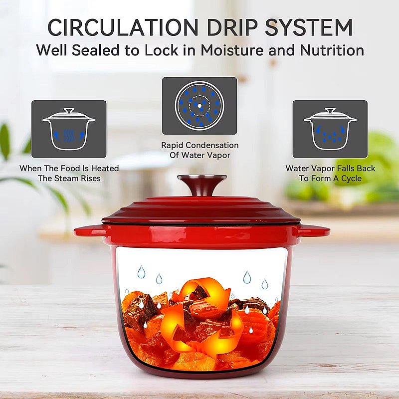 The tight-fitting lid of our Dutch Oven locks in moisture and flavor, ensuring that your slow-cooked dishes, like casseroles and roasts, turn out perfectly every time. The stainless steel knob adds a touch of elegance and functionality.